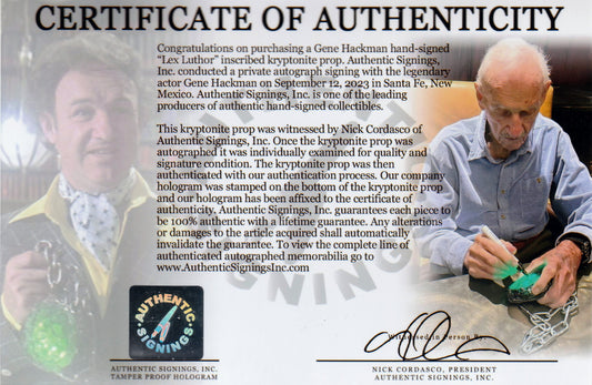 Gene Hackman "Lex Luthor" Autographed Superman Kryptonite Prop Rock