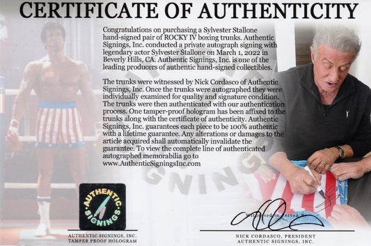 Sylvester Stallone Autographed ROCKY IV Boxing Trunks