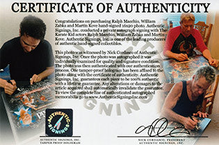 Ralph Macchio, William Zabka & Marty Kove Autographed The Karate Kid 16x20 Photo