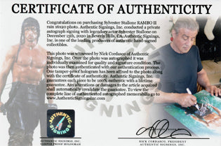 Sylvester Stallone Autographed RAMBO II "RAIN" 16x20 Photo