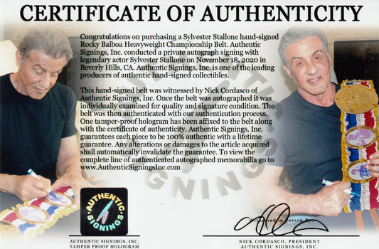 Sylvester Stallone Autographed ROCKY BALBOA Heavyweight Championship Belt