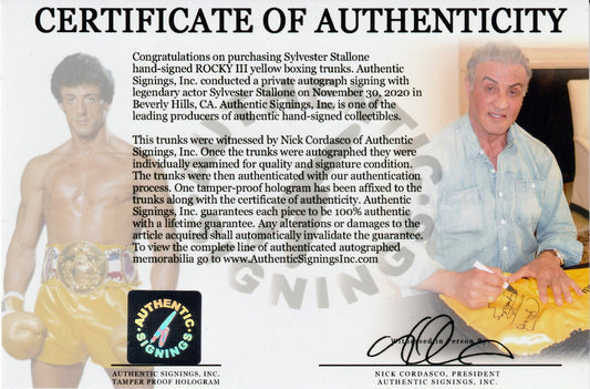 Sylvester Stallone Autographed ROCKY III Boxing Trunks