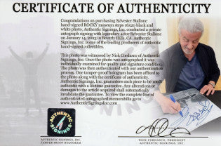 Sylvester Stallone Autographed ROCKY 16x20 Photo "B&W ON MUSEUM STAIRS"
