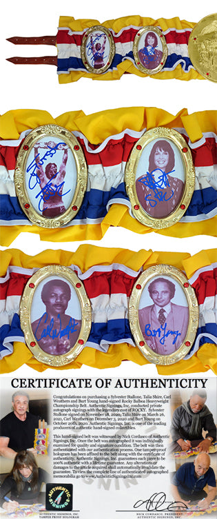 Sylvester Stallone, Talia Shire, Carl Weathers and Burt Young Autographed ROCKY Cast Heavyweight Championship Belt