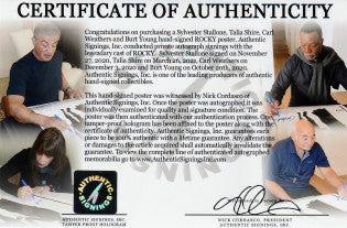 Sylvester Stallone, Talia, Shire, Carl Weathers and Burt Young Autographed ROCKY 24x36 Movie Poster