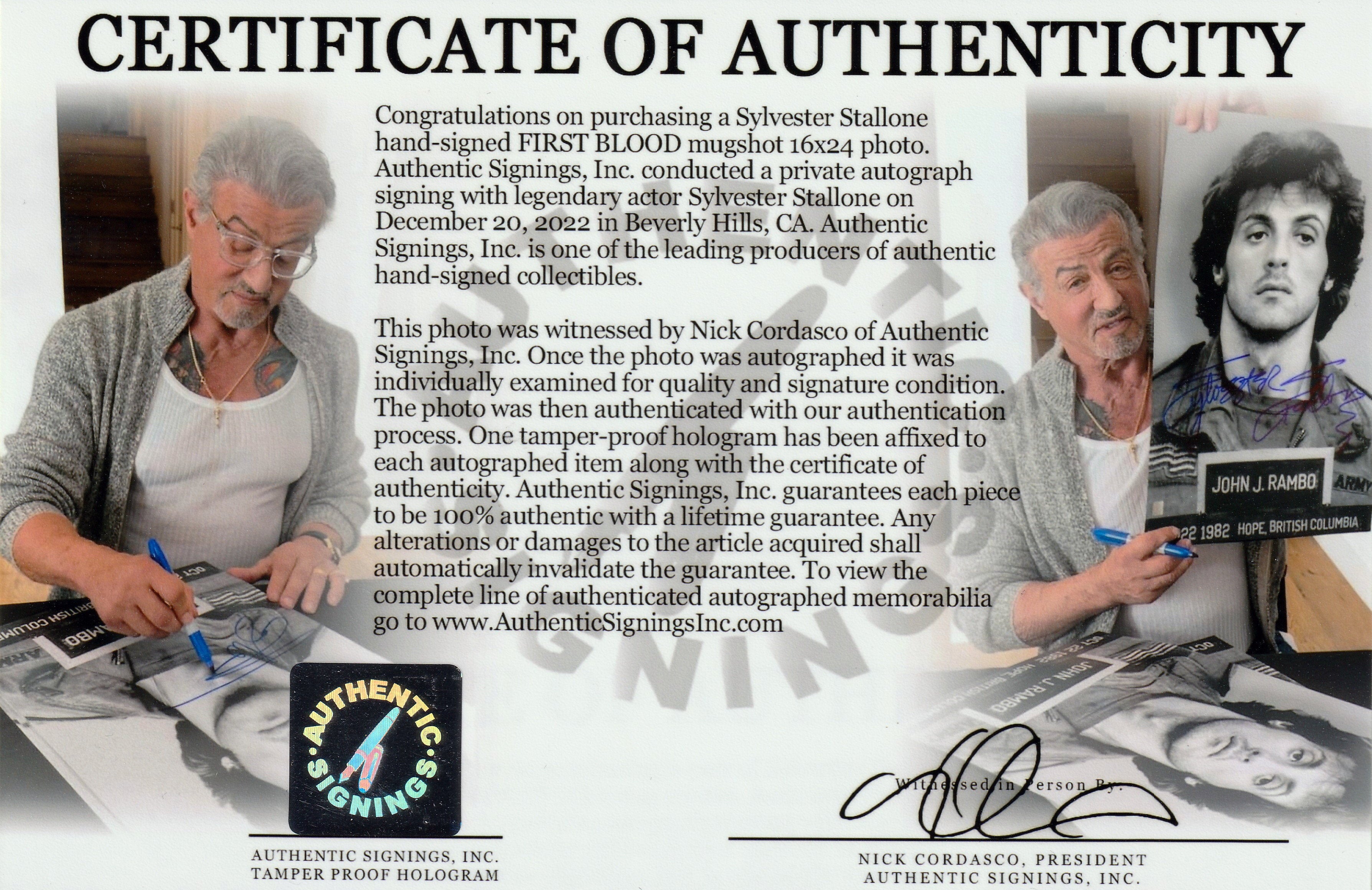 Each and every hand-signed item is witnessed by a representative of Authentic Signings, Inc. Once the item is autographed, they were individually examined for quality and signature condition. The items are then authenticated with our three step authentication process. One tamper-proof hologram has been fixed to each product, along with the certificate of authenticity and photos from the signings. Authentic Signings, Inc. guarantees each piece to be 100% authentic with a lifetime guarantee. Any alterations or damages to the article acquired shall automatically invalidate the guarantee.